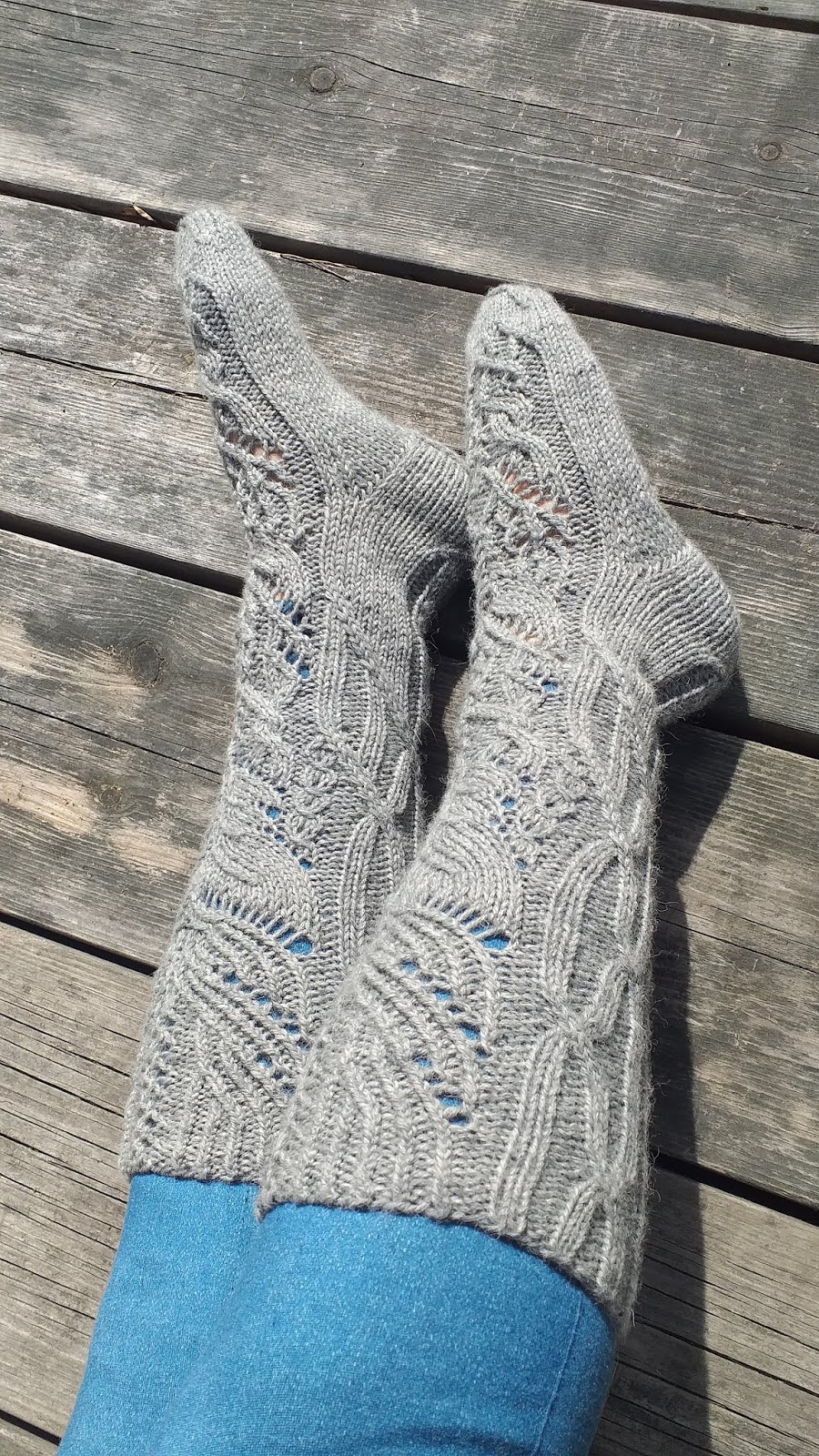 Niinan selkeillä ohjeilla helppo oli neuloa ja todella kaunis pinta päivittäin julkaistuista pätkistä muodostui sukan molemmille puolille. Olen tottunut neulomaan kirjoneuleita puoli kokoa pienemmillä puikoilla kuin ohjeissa, mutta nyt unohtui vaihtaa puikot isompiin ja aavistuksen liian napakkaa neuletta aikaan sain. Sukkien saajan jalat ovat pienemmät kuin minulla, joten ehkä ovat hänellä polvimittaiset. Ensimmäistä kertaa ikinä neuloin vahvistamattoman kantapään, joka on näissä sukissa kaunis, mutta sukan kestävyys hieman mietityttää. Onko teillä vastaavat kantapäät kestäneet hyvin käytössä?